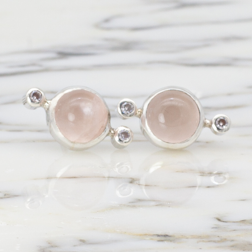 Estas hermosas caravanas están hechas de Cuarzo Rosa y dos cubic , una piedra conocida por su energía amorosa y calmante. Cada caravana viene con dos cubics, que agregan un toque de brillo y elegancia. Estas caravanas son perfectas para agregar un toque de belleza y serenidad a cualquier atuendo.