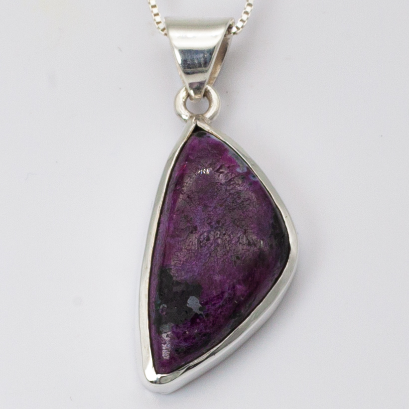 El colgante de rubí en zoisita está hecho a mano en plata 925, cuidando cada detalle para resaltar el contraste entre los tonos verdes y rojos de la piedra.